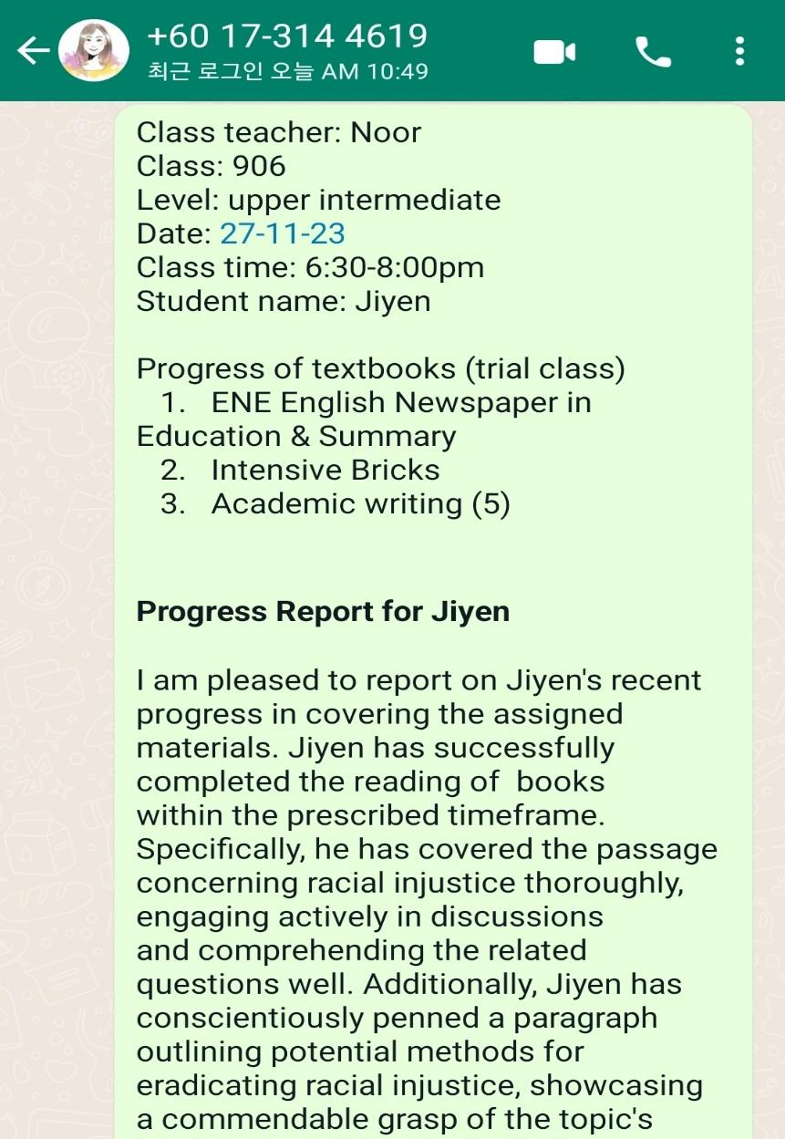 (정규 수업의 경우, 교사가 수업 후에 작성하기 때문에 다음 날 전달될 수 있습니다.)